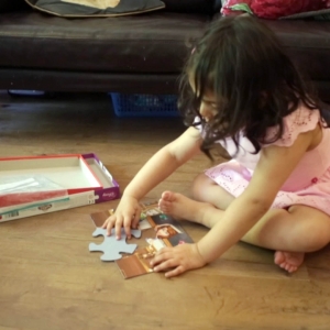 Amani now plays with her siblings, and looks at toys with a different perspective in comparison to when she would just put them in her mouth and not understand the meaning of play. She is now able to do 20-piece puzzles, a huge improvement from not even being able to do a 2-piece puzzle! Her strengths lie in matching and problem solving, and threading has become her favourite thing to do when playing, something she couldn’t do a year ago due to her lack of fine gross motor skills. Amani is nearly toilet trained, and has developed an array of self-help skills, all of which help make her more independent. She is now able to dress and undress herself, as well as fasten and unfasten her own clothing. These skills, however small they may seem, have taken a huge amount of pressure away from her father and me, as we used to struggle to get her dressed, and it always took both of us to dress her.